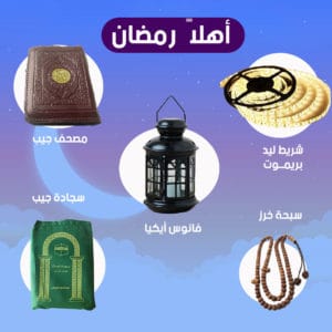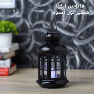 فانوس ايكيا صغير لون أسود + سجادة جيب + سبحة خرز + مصحف جيب بسوستة + شريط ليد الوان بالريموت